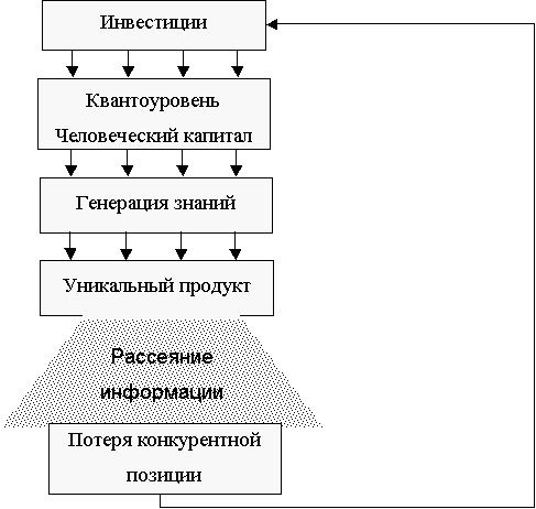 Интеллектуальный потенциал, умение работать с имеющейся информацией и наличие информационных технологий позволяют эффективно функционировать предприятию в условиях риска. Однако чтобы усиливать конкурентные позиции во внешней среде, предприятию необходимо постоянно направлять инвестиции в человеческий капитал (рис. 1), поддерживая таким образом уникальность своего продукта.