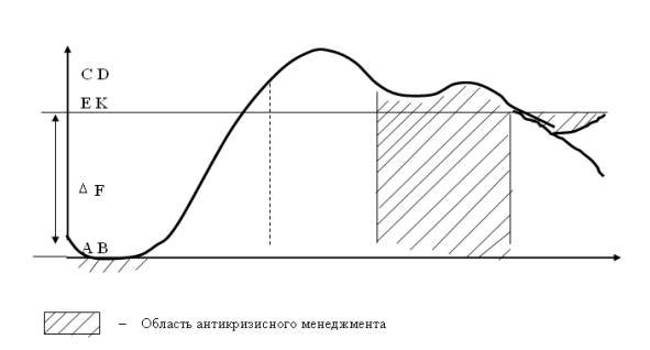 управлінських зусиль. Графік життєвого циклу організації на етапі її кризового