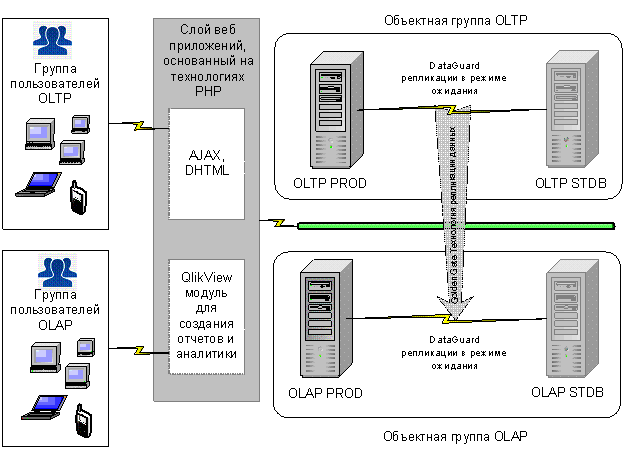 использована технология репликации GoldenGate [4], обеспечивающая ведение данных в реальном времени. Oracle GoldenGate позволяет