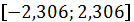 двобічної критичної області при α = 0,05, k = n – m – 1 = =11 – 2 – 1 = 8 знаходимо (α/2, k) = (0,025;13) = 2,306. Оскільки