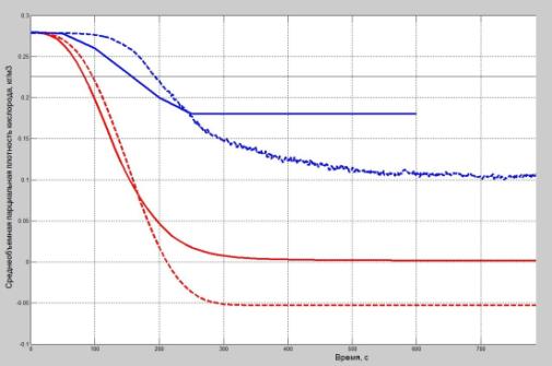 среднеобъемной парциальной плотности кислорода в газовой среде при пожаре в