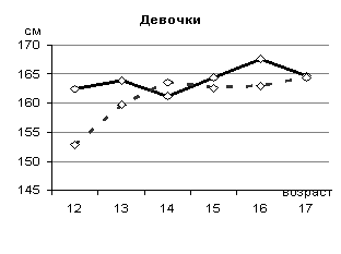 отставания были в 13 лет и более выраженный - 16 лет. У девочек 12-17 лет с хронической