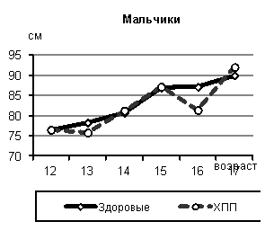окружности грудной клетки мальчиков (ОГК) 12–17 лет с ХПП показало, что периоды