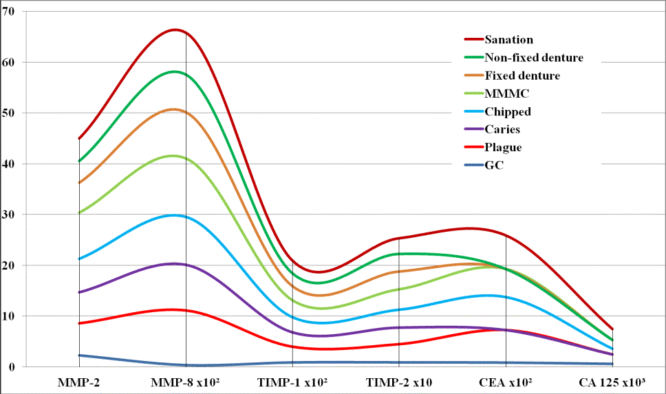 So, examinations of dental status and expression biomarkers oral fluid in