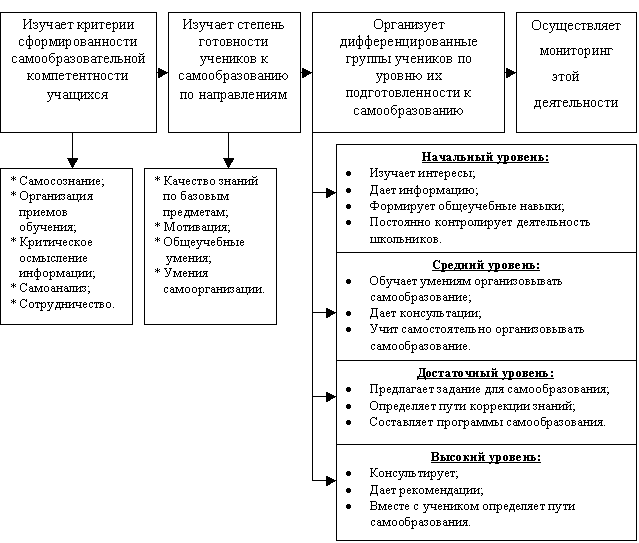 алгоритм деятельности учителя по развитию навыков самообразовательной деятельности учеников (рис. 1).
