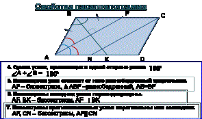 признаков и свойств параллелограмма; умения решать задачи на применение свойств.
