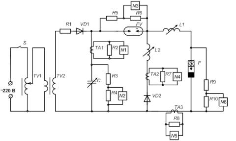 накопительный конденсатор C — разрядник FV — диод VD2, которая имеет индуктивность, отличную от