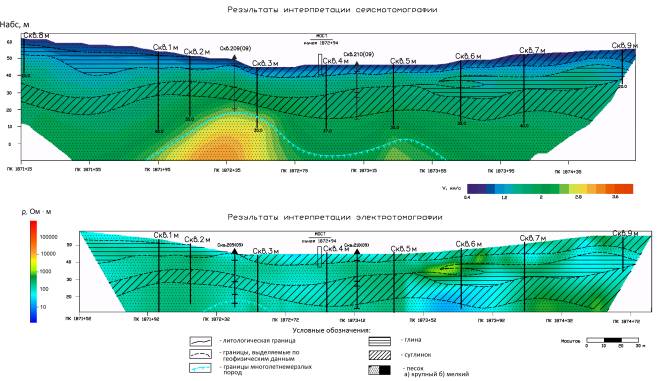 трассы комплексом геофизических исследований, включающих в себя: электротомографию,