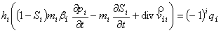 толщины и проницаемости высокопроницаемого и низкопроницаемого пропластков, pi – давление жидкости в i-м слое, Si – водонасыщенность i-го слоя, fвi, fнi – фазовые проницаемости