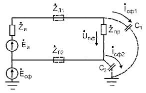 in the wires may be considered as in-phase and anti-phase voltages and currents.