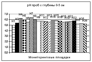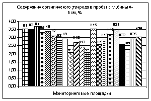 В 2013-14 гг. было исследовано 27 мониторинговых площадок (МП), все они имели названия, упоминаемые ниже. На всех МП были проведены полные описания растительного покрова и морфогенетический анализ полнопрофильных почвенных разрезов, даны названия почв согласно «Классификации и диагностики почв России» (2004). На 21 МП отбирались пробы на исследование микробиологической активности, из них в 17-ти - микробиологические исследования проведены дважды: в 2013-14 гг. В пробах со всех МП, отобранных с глубин 0-5 и 5-10 см, определялись содержание органического углерода, рНвод, гранулометрический состав и содержание тяжелых металлов (валовые формы). Определение содержания микроэлементов проводилось масс-спектральным методом с индуктивно-связанной плазмой (MS), либо атомно-эмиссионным методом с индуктивно-связанной плазмой (AES). Определение содержания Mn, Cd, Fe атомно-абсорбционным методом в ацетатно-аммонийной вытяжке (рН=4,8).