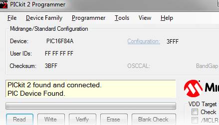 PICkit2 Programmer (версии 6.21) сохраняет калибровочную константу, а затем