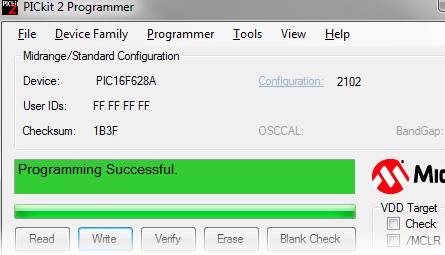 выполнении процедуры записи уведомит надпись "ProgrammingSuccessful",