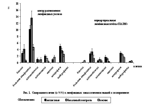 распределения лимфоидных клеток больше, чем в виварном контроле на 20,4 клетки на единице площади среза. Основную
