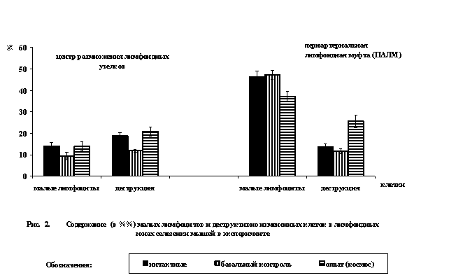 мышей после космического полета, по сравнению с базальным контролем, происходят резкие нарушения в цитоархитектонике лимфоидной