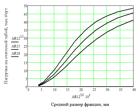 2 - Нагрузка на очистной забой в зависимости от среднего диаметра отбитого