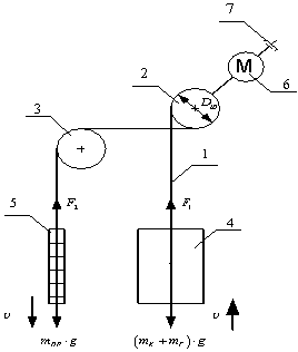 на рис. 1.1. Ліфт має поліспастний підвіску з кратністю поліспаста 2, при якій