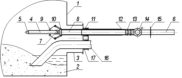 размыва донных отложений устройство размещается так, чтобы ствол 4 с соплом 5