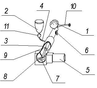 патрон 9. Головка, имеющая манометр 11 для контроля подачи твердосплавного или