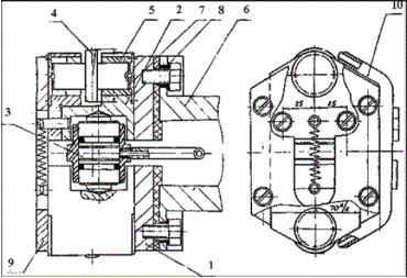 9 между ползуном 5 и стяжной гайкой 10. Задняя часть вала выполнена конической.