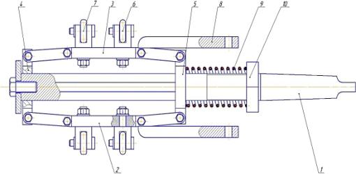 Стяжную гайку 10 перемещают до полного освобождения пружины 9. Инструментальную
