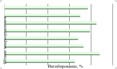 Рисунок 2 – Ингибирующий эффект штаммов, выделенных из