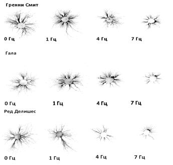 зависимость от частоты облучения Рис.3 ГРФ 3 сортов яблок