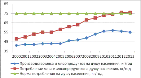 Рисунок 1 – Производство и потребление мясных продуктов в