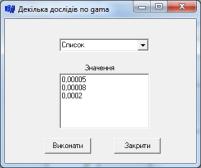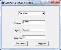 пункту меню “Декілька дослідів” користувач може повести декілька дослідів по