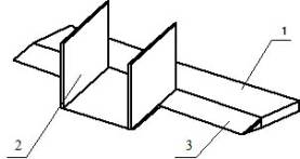 Рис. 1 – Ступенчатая ножевая система скрепера: 1 – центральные ножи; 2 – боковые ножи; 3 – плита