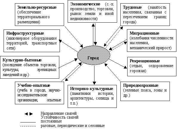 функциональных связей города с пригородными территориями;