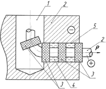 (conducting wire); 3 – burnishing belts; 4 – operating medium (electrolyte); 5