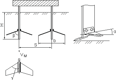 шириною обробітку, кут кришення ножів α, кут розхилу ножів 2g та кут нахилу ножів b відносно стійки (рис. 1).