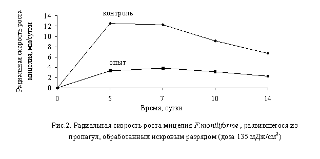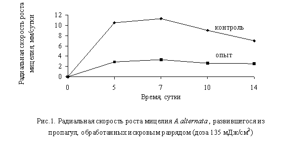 из облученных пропагул. Искровой разряд ограничивает ростовую активность