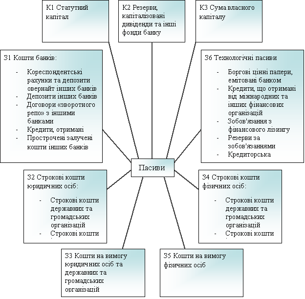 банку, так звані технологічні пасиви, сума власного капіталу банку.