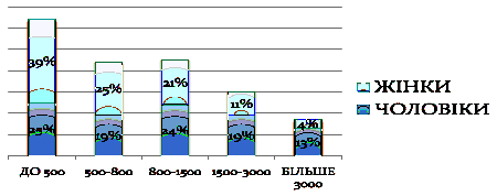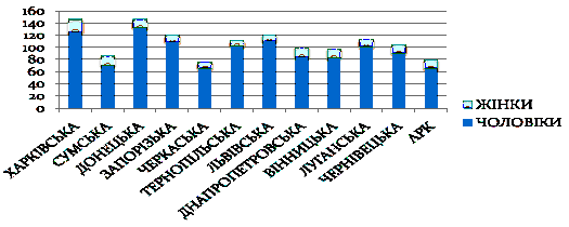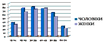 Рис. 1. Рівень зайнятості населення в залежності від статі, %