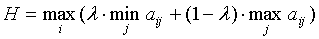 найгірших наслідків від застосування кожної зі стратегій. Значення цієї константи можуть бути від нуля до одиниці.