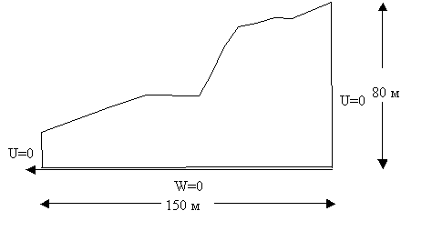 Ниже предлагаются результаты счетов по определению устойчивости (напряженного состояния) склона с защитным сооружением в упругой постановке. Геометрические размеры области и граничные условия показаны на рисунке 1.