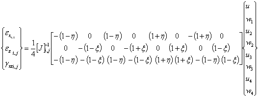 Для конечноэлементного моделирования указанной выше области здесь удобно применять линейного четырехугольного изопараметрического элемента произвольной формы, но с дополнительными внутренними точками интегрирования.