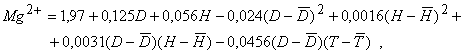 Mg2+ = 7,98–0,279Сa2+ –0,545Na+ –0,704K+ +0,066D+0,021H–0,0072