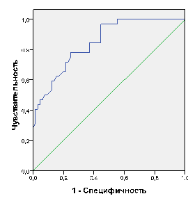 шкале для значений AUC, рис. 1). Площадь под кривой (AUC) составила 0,848 (95%