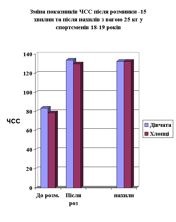 серцевих скорочень навіть знизилась порівняно з тією, яка була після розминки. У дівчат після розминки ЧСС