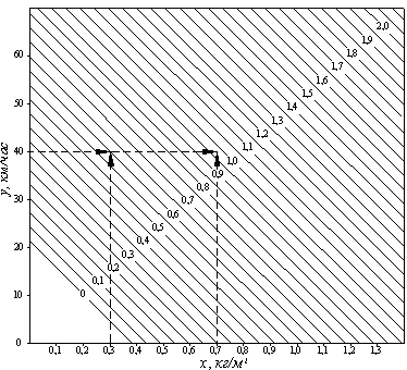 бортовым камнем улиц от скорости движения транспортных средств (у) и интенсивности накопления грязи (х) в прилотковой части автомобильных