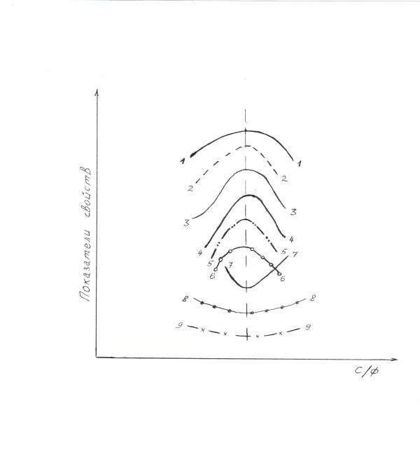 внутреннее сцепление; 6 – упругоэластические свойства; 7- ползучесть; 8 – подвижность;