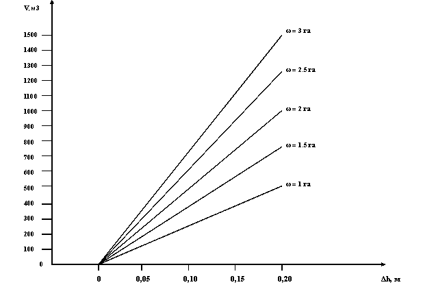 1/4 · ω · (h - h0), м3