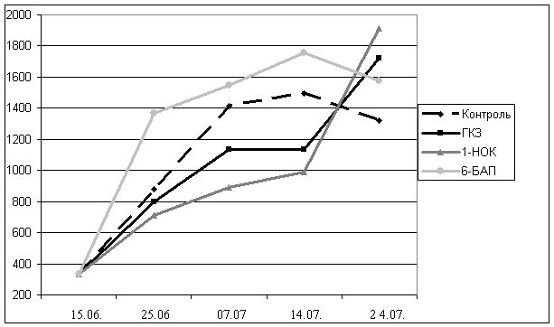 дослідженнями встановлено, що за дії 6-БАП відбувалося зростання площі