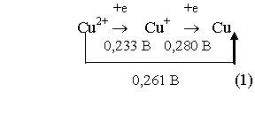 свидетельствует о двухстадийном восстановлении меди. Среднее значение гетерогенной константы скорости, рассчитанное