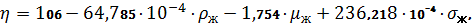характеристик шлама (плотности – ρж, вязкости - µж,