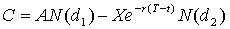 цена актива; X –цена исполнения; (T – t) – время до момента