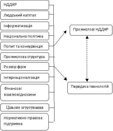 наповненість та досконалість виробничої сфери; НДДКР (від наявних лабораторій